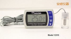 認(rèn)證的報警溫度計, 型號 12215, 是一個帶有內(nèi)外部傳感器、 最小/最大內(nèi)存、 大型易讀的液晶屏和高/低報警設(shè)置雙通道溫度計。內(nèi)部傳感器可測量大氣溫度,,外部傳感器可監(jiān)測冰柜、 冰箱、 或冷東陳列柜內(nèi)的溫度。外部傳感器有 3 米長的電纜、 不銹鋼鈍頭封裝在丙二醇塑料瓶中,這個解決方案是公認(rèn)為安全的。這種封閉式的方法防止了假報警,,因為探針不受正常頻繁使用門關(guān)開的急劇波動的情況下的溫度 測量。此溫度計模仿類似于存儲在冰箱和冷柜藥房和實驗室中的常見液體介質(zhì)中的溫度讀數(shù)。除了醫(yī)藥中的應(yīng)用,溫度計也可在冷凍展示柜、 冰箱、 或冰柜等的食品應(yīng)用中 。