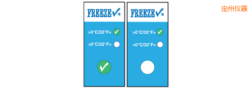 TempDot FreezeCheck標(biāo)簽,,型號(hào)54000,用來(lái)表示溫度低于0°C。如果溫度低于0°C,標(biāo)簽不可逆轉(zhuǎn)地發(fā)生變化,變成白色,勾形標(biāo)記消失。 冷凍檢查標(biāo)簽用來(lái)指示溫度低于0°C. 當(dāng)溫度下降到低于臨界點(diǎn), 指示劑不可逆轉(zhuǎn)的改變從清晰到白色并且綠色合格標(biāo)志不再顯示。