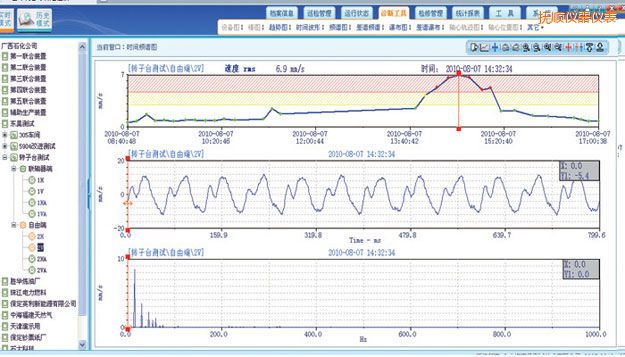 在線監(jiān)測軟件集在線監(jiān)測、點巡檢和無線監(jiān)測系統(tǒng)于一體,涵蓋企業(yè)所有旋轉機械的狀態(tài)監(jiān)測、故障診斷與設備管理系統(tǒng)。基于B/S與C/S架構,,實現(xiàn)車間、總廠和東華遠程診斷中心多級無縫對接。 1、車間級軟件:獨立運行、二級報警;保存歷史數(shù)據(jù)進行趨勢分析,,實現(xiàn)故障預報; 2、設備狀態(tài):建立設備數(shù)據(jù)庫,采用樹狀結構分層管理(總廠、分廠、車間、設備); 3、多種報警:總值報警、趨勢報警、突變報警、頻段報警等觸發(fā)事件; 4、 日記數(shù)據(jù)庫:定時保存測點振動值及波形數(shù)據(jù)。時間間隔用戶任意設定; 5、數(shù)據(jù)自維護:最近三天數(shù)據(jù)密集存儲,,3天以上數(shù)據(jù)庫稀疏存儲,定期刪除較早期的數(shù)據(jù); 6、報警數(shù)據(jù)庫:報警觸發(fā)后,,連續(xù)保存報警前后設備監(jiān)測點的振動值和波形數(shù)據(jù),供事后分析用; 7、報警通知:出現(xiàn)報警事件時,,系統(tǒng)在聲光報警的同時,,采用手機短信、電子郵件等形式發(fā)送報警信息; 8、趨勢分析:分析預測中短期設備狀態(tài)發(fā)展趨勢,,實現(xiàn)故障預知功能; 9、故障分析:通過時域和頻域分析,對典型故障,如軸系故障,,軸承類故障,齒輪箱類故障進行診斷分析; 10、輔助工具:萬種軸承庫,幫助用戶快速找到滾動軸承的故障頻率,,輔助軸承診斷分析和定位; 11、診斷助手:滾動軸承的設備故障診斷助手功能,,可根據(jù)報警數(shù)據(jù)自動診斷分析設備的各種故障原因,并提出檢修建議; 12、報告與報表:狀態(tài)統(tǒng)計報表,故障報告、診斷報告、檢修報告和驗收報告。