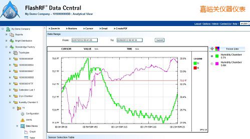 FlashRF 數(shù)據(jù)中心 DeltaTrak公司的FlashRF數(shù)據(jù)中心是基于云基礎(chǔ)應(yīng)用技術(shù),,它使系統(tǒng)有了更大的視圖和本地安裝的2.4 GHz射頻無(wú)線溫濕度網(wǎng)絡(luò)監(jiān)測(cè)的控制。 FlashRF 數(shù)據(jù)中心是通過(guò)云技術(shù)訪問(wèn)所有現(xiàn)在網(wǎng)絡(luò)瀏覽器并且提供易于使用結(jié)合了外部設(shè)施地圖、 記錄議溫度圖表和分層設(shè)施的網(wǎng)絡(luò)結(jié)構(gòu)的界面。應(yīng)用程序非常直觀使得應(yīng)用一目了然易于操作。DeltaTrak 的 FlashRF 數(shù)據(jù)中心解決方案允許互聯(lián)網(wǎng)用戶訪問(wèn)其溫度數(shù)據(jù)在任何時(shí)間以向顧客提供更好的產(chǎn)品質(zhì)量的可見(jiàn)性。警報(bào)可以建立在溫度劇增并且通報(bào)可以和電子郵件或短信同時(shí)發(fā)出。