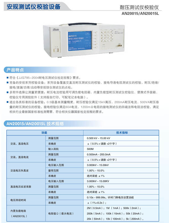 • 濟南耐壓測試儀校驗儀 AN20015/ AN20015L