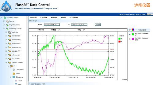FlashRF 數(shù)據(jù)中心 DeltaTrak公司的FlashRF數(shù)據(jù)中心是基于云基礎(chǔ)應(yīng)用技術(shù),,它使系統(tǒng)有了更大的視圖和本地安裝的2.4 GHz射頻無線溫濕度網(wǎng)絡(luò)監(jiān)測的控制。 FlashRF 數(shù)據(jù)中心是通過云技術(shù)訪問所有現(xiàn)在網(wǎng)絡(luò)瀏覽器并且提供易于使用結(jié)合了外部設(shè)施地圖、 記錄議溫度圖表和分層設(shè)施的網(wǎng)絡(luò)結(jié)構(gòu)的界面。應(yīng)用程序非常直觀使得應(yīng)用一目了然易于操作。DeltaTrak 的 FlashRF 數(shù)據(jù)中心解決方案允許互聯(lián)網(wǎng)用戶訪問其溫度數(shù)據(jù)在任何時(shí)間以向顧客提供更好的產(chǎn)品質(zhì)量的可見性。警報(bào)可以建立在溫度劇增并且通報(bào)可以和電子郵件或短信同時(shí)發(fā)出。