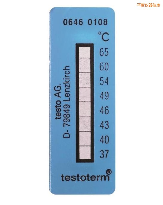 testoterm - 溫度貼(+37 ~ +65 °C) (+37 °C to +65 °C) 訂貨號(hào) 0646 0108 測量范圍+37 °C 到+65 °C 自粘性條形溫度貼 一旦超出限值即可在2~3s內(nèi)改變顏色 監(jiān)控移動(dòng)或小物體溫度變化以及長期監(jiān)測運(yùn)輸和存儲(chǔ)過程的理想工具 自粘性溫度貼廣泛用于表面溫度測量,溫度計(jì)中的金屬元素,超出溫度量程2,3秒內(nèi)即可改變顏色。