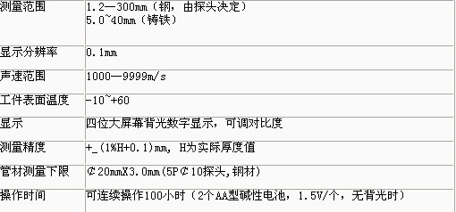 功能特點: 1、 具有鑄件測試功能; 2、設(shè)有耦合提示、低電壓提示; 3、關(guān)機方式:手動和自動關(guān)機等功能(無操作三分鐘后); 4、最小值捕捉:可選擇顯示當(dāng)前厚度值或最小厚度值 5、數(shù)據(jù)存儲:可存儲500個測量值和五個聲速值 6、聲速可調(diào):可利用已知厚度試塊測量聲速; 7、增益設(shè)置:具有高低增益設(shè)置功能 8、公英制轉(zhuǎn)換:可選擇mm或inch 9、背光顯示功能,適合在光線不好的環(huán)境中進行測量。