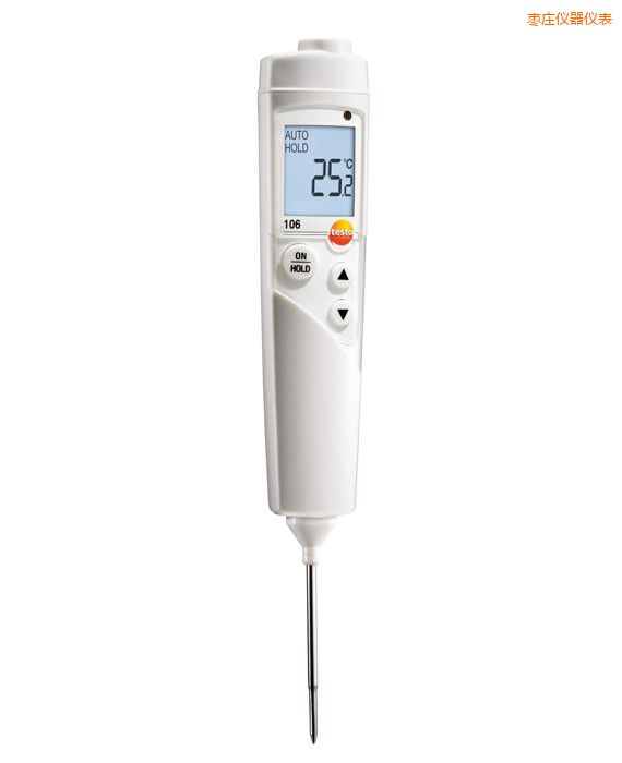 testo 106防水型食品中心溫度計(jì),包括探頭保護(hù)帽和電池。