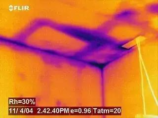 一個典型的實例是尋找地板加熱系統(tǒng)發(fā)生滲漏的位置。在紅外熱像儀的幫助下加熱系統(tǒng)的滲漏點可以被檢修人員發(fā)現(xiàn)并及時維修。精確確定滲漏點位置可以避免不必要的開挖過程,節(jié)省開支。