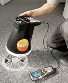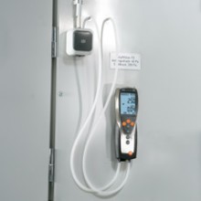 用于管道測量的流速傳感器都帶有伸縮桿,,便于在大型空氣管道中進行操作。如果需要,還可以使用測量流速的探頭來測量溫度和濕度?梢愿鶕(jù)應(yīng)用需求選擇熱敏探頭、葉輪探頭或皮托管來測量管道中的流速。 測量室內(nèi)空氣質(zhì)量(二氧化碳)![]() 高濃度的二氧化碳會導(dǎo)致室內(nèi)空氣質(zhì)量變差,從而使人體感覺疲倦,無法集中精神,甚至生病。因此,為了保證良好的室內(nèi)空氣質(zhì)量,二氧化碳濃度一般不應(yīng)超過1 000 ppm。參考范圍為700到1500 ppm。 IAQ探頭(訂貨號0632 1535)尤為適合監(jiān)控室內(nèi)空氣質(zhì)量。此探頭可以同時記錄二氧化碳濃度、溫度和相對濕度。 在通風(fēng)管道內(nèi)使用皮托管進行測量為了確保通風(fēng)和空調(diào)系統(tǒng)的正常功能,對通風(fēng)管道內(nèi)的空氣流速進行檢測是非常重要的。 testo 435-3的內(nèi)部壓差傳感器用來測量高流速或高污染的氣流,皮托管測量范圍從0到64米/秒的空氣流速。testo 435-3可以同時顯示壓力、流速和體積流量。 在儀器背后的磁貼可以實現(xiàn)免提操作。 過濾器上壓差測量![]() 空調(diào)系統(tǒng)配有過濾器,可以防止室外空氣中的灰塵進入室內(nèi)。應(yīng)定期檢查這些過濾器,以確保它們運行良好。為此,,需要測量過濾器前后的壓力差。如果壓差過大,說明過濾器被污染,需要更換。 testo 435-3內(nèi)置壓差傳感器,測量范圍0到25 hPa。在壓差測量過程中會進行溫度補償,以得到精確讀數(shù)。在儀器背后的磁貼可以實現(xiàn)免提操作。 熱輻射的測量![]() 多功能測量儀testo 435能夠幫助您可靠地測量熱舒適度。連接一個熱輻射黑球探頭(訂貨號0602 0743),測量輻射熱量(也就是有效或感知溫度)。熱輻射黑球探頭測量的有效溫度與人體感知溫度的差值最好不超過± 0.41 K。 室內(nèi)溫度(空氣溫度和有效溫度)的測量要采取在同一個地方,相同的條件,如室內(nèi)空氣流速的一致的情況下進行。 測量空氣和表面溫度為了讓人體感覺舒適,達到最佳狀態(tài),房間內(nèi)必須調(diào)節(jié)空調(diào)運行工況。除了建筑結(jié)構(gòu)因素和個體感覺,以下因素也會在很大程度上影響室內(nèi)空氣的舒適度:室內(nèi)空氣溫度以及墻壁、窗戶、底板和天花板的表面溫度。 testo 435提供滿足不同應(yīng)用的熱電偶探頭。表面探頭(訂貨號0602 0393)和空氣濕度探頭(訂貨號0636 1712)很適合分析結(jié)露問題和霉變的情況。 出風(fēng)口風(fēng)速測量![]() 為了確保系統(tǒng)的高效使用,每個管道的進出口體積流量都應(yīng)符合要求,,這是一個基本的前提條件。 在出風(fēng)口處,,適合采用直徑100mm的葉輪風(fēng)速探頭來測量體積流量(訂貨號0635 9435),因為它們可以對較大面積的流速進行綜合測量,從而排除通風(fēng)格柵所產(chǎn)生的干擾(回路方法)。 在空氣格柵和提升閥的抽風(fēng)口或出風(fēng)口進行測量時,適合采用我們的風(fēng)量罩套裝(訂貨號0563 4170)以及直徑100mm葉輪風(fēng)速探頭(訂貨號0635 9435)。通過風(fēng)量罩來記錄整體體積流量值,不需要根據(jù)流速和面積進行計算。這種流量測量方法簡單、可靠。 一氧化碳測量![]() 一氧化碳(CO)是一種無味、無色、無刺激性的氣體,但是有毒。它是在熱源和燃機內(nèi)的煤、木頭、油、天然氣等含碳物質(zhì)燃燒不充分情況下產(chǎn)生的。一氧化碳濃度增加速度很快,尤其是在沒有足夠氧氣的情況下,并可能對健康產(chǎn)生不良影響。 即使環(huán)境空氣中含有微量的一氧化碳,環(huán)境一氧化碳探頭(訂貨號0632 1235)和testo 435-1也能夠檢測到。