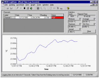 · 使用 Fluke Calibration 手持式和 Tweener 讀數(shù)裝置收集實(shí)時(shí)數(shù)據(jù) · 計(jì)算統(tǒng)計(jì)數(shù)值并顯示用戶定制圖表 · 允許用戶選擇啟動(dòng)時(shí)間、停止時(shí)間和取樣周期 · 提供由用戶定義的告警,,該告警會(huì)觸發(fā)用戶定制的告警事件 · 使用串行端口或 IR 端口,,從 1522 型讀數(shù)裝置下載數(shù)據(jù) · 內(nèi)置用于讀取/寫入探頭系數(shù)以及其他讀數(shù)裝置設(shè)置的工具 · LogWare 使您可以通過圖表方式將數(shù)據(jù)采集至您的 PC,并將數(shù)據(jù)存儲(chǔ)在文本文件中。同時(shí),,該軟件還能自動(dòng)對每個(gè)數(shù)據(jù)集執(zhí)行統(tǒng)計(jì)功能。其安裝非常簡單,,無需閱讀手冊就可使用。 · LogWare 設(shè)計(jì)用于溫度數(shù)據(jù)采集。設(shè)定高級和低級告警條件,設(shè)置延遲啟動(dòng)時(shí)間,按照固定數(shù)目的讀數(shù)或固定時(shí)間長度存儲(chǔ)數(shù)據(jù)記錄,在 1 秒到 24 小時(shí)之間設(shè)置采集周期,,然后讓軟件從讀數(shù)裝置中獲取讀數(shù),同時(shí)您可以完成其余的工作。 · 在記錄會(huì)話過程中,您可以查看時(shí)間/溫度趨勢圖中的數(shù)據(jù),而數(shù)據(jù)點(diǎn)會(huì)存儲(chǔ)至您 PC 上的文件中。在記錄完成后,可以將圖表輸出至您的打印機(jī),,通過電子數(shù)據(jù)表查看測試點(diǎn),或者重新查看相關(guān)的記錄統(tǒng)計(jì)數(shù)值。 · 如果您擁有 1522 型 LLL 數(shù)據(jù)記錄器,那么您還能享受更多功能。1522 可在多個(gè)記錄會(huì)話中存儲(chǔ)多達(dá) 10000 個(gè)數(shù)據(jù)點(diǎn)。返回到您的 PC 后,可以使用 LogWare 將數(shù)據(jù)下載到單個(gè)的記錄會(huì)話中,并單獨(dú)查看每一個(gè)會(huì)話。 · 在現(xiàn)場取出 1522,存儲(chǔ)來自制冷器、烘箱、腔室以及任何您需要記錄溫度的設(shè)備讀數(shù),再將 1522 與 PC 連接,LogWare 會(huì)將每個(gè)記錄會(huì)話分成單獨(dú)的數(shù)據(jù)集。您無需在您的電子數(shù)據(jù)表內(nèi)載入文本文件,,并試著分清每個(gè)記錄會(huì)話對應(yīng)哪些數(shù)據(jù)點(diǎn)。LogWare 會(huì)為您完成全部這些操作。 · 為了更迅速地從 1522 下載數(shù)據(jù),,除了標(biāo)準(zhǔn)串行接口以外,我們還提供了 IR 鏈路。高速發(fā)送您的數(shù)據(jù),,或使用標(biāo)準(zhǔn)的 RS-232 鏈路。 · LogWare 還允許您更改讀數(shù)裝置配置。設(shè)定探頭系數(shù)、將校準(zhǔn)數(shù)據(jù)寫入計(jì)量器、設(shè)定受通行碼保護(hù)的參數(shù),,以及訪問其他專用于您的讀數(shù)裝置的工具,這些操作全部在 PC 上的用戶友好 Windows 屏幕中進(jìn)行。